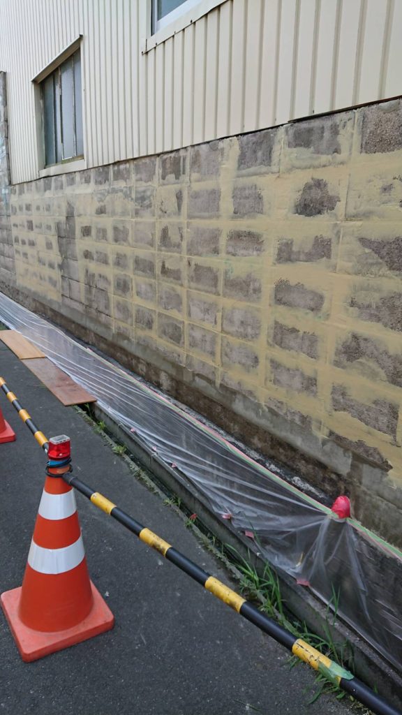 コンクリートブロックアラミド補強工事